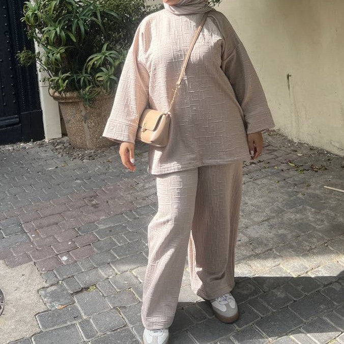 استمتعي بسحر الخريف مع طقم هودي وسروال مصنوع من الثوب الكوتلي الفاخر، بملمس ناعم ودافئ يمنحك راحة وأناقة في كل لحظة 🍁